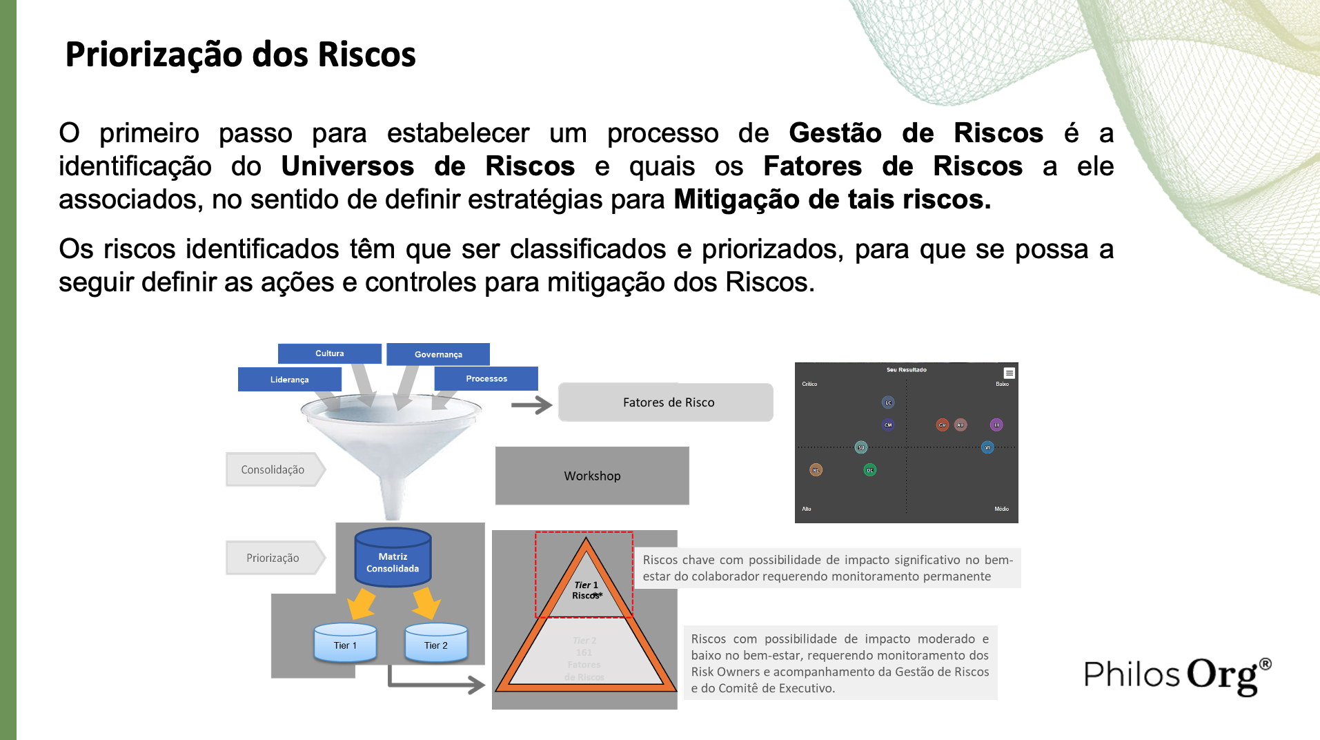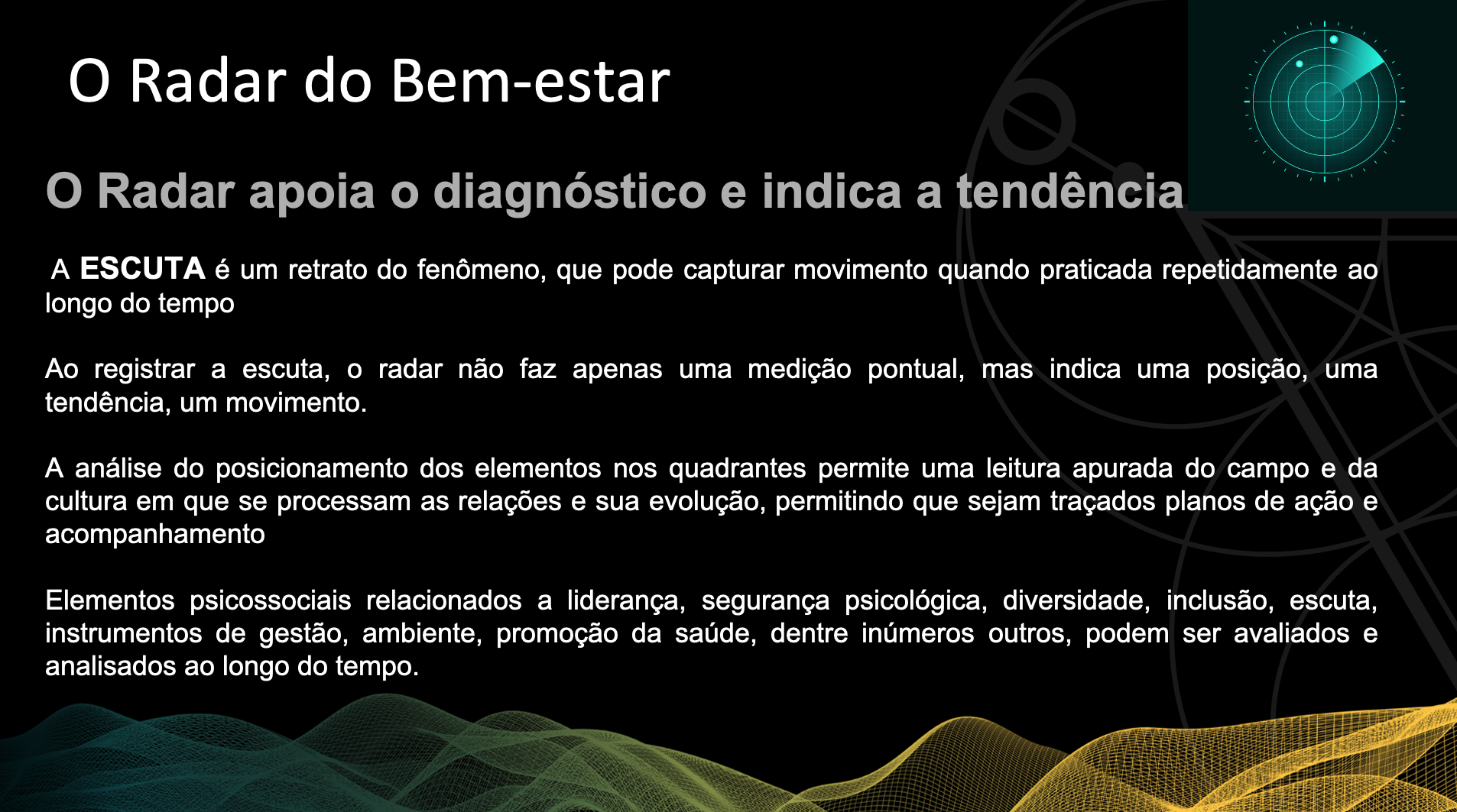 Este ambiente permite a avaliação e definição das estratégias, otimizando o direcionamento das ações e investimentos e maximizando o retorno, em consonância com as melhores práticas de Promoção da Saúde Mental e bem-estar no trabalho.